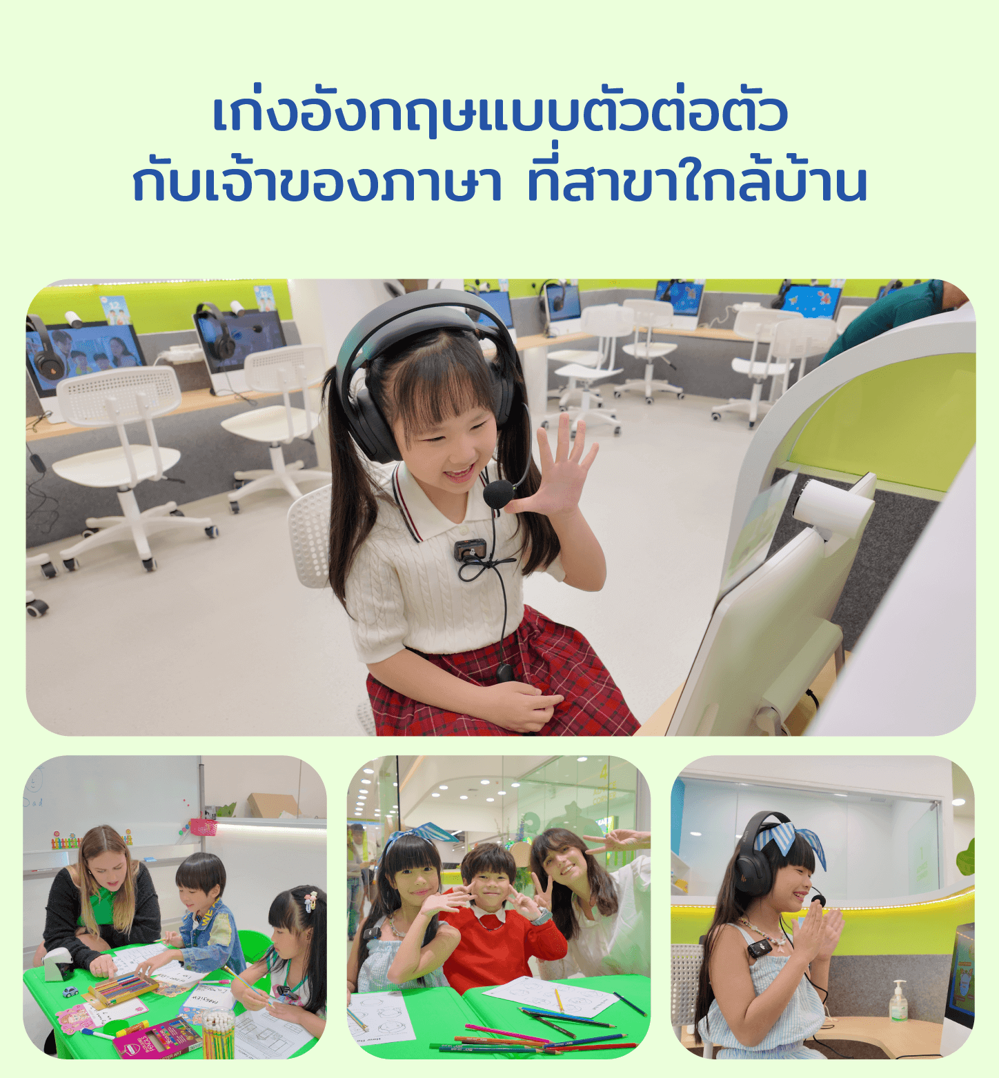 คอร์สเรียนภาษาอังกฤษออนไลน์แบบตัวต่อตัว เหมาะสำหรับเด็กที่มีอายุ 3-12 ปี โดยครูจากยุโรปและอเมริกาได้ผ่านการคัดเลือกมาอย่างพิถีพิถัน ในห้องเรียนนั้นเปรียบเสมือนครูมานั่งสอนอยู่ข้างๆนักเรียน พวกเขาสามารถเรียนรู้ และเข้าใจภาษาอังกฤษได้โดยไม่ต้องออกจากบ้าน