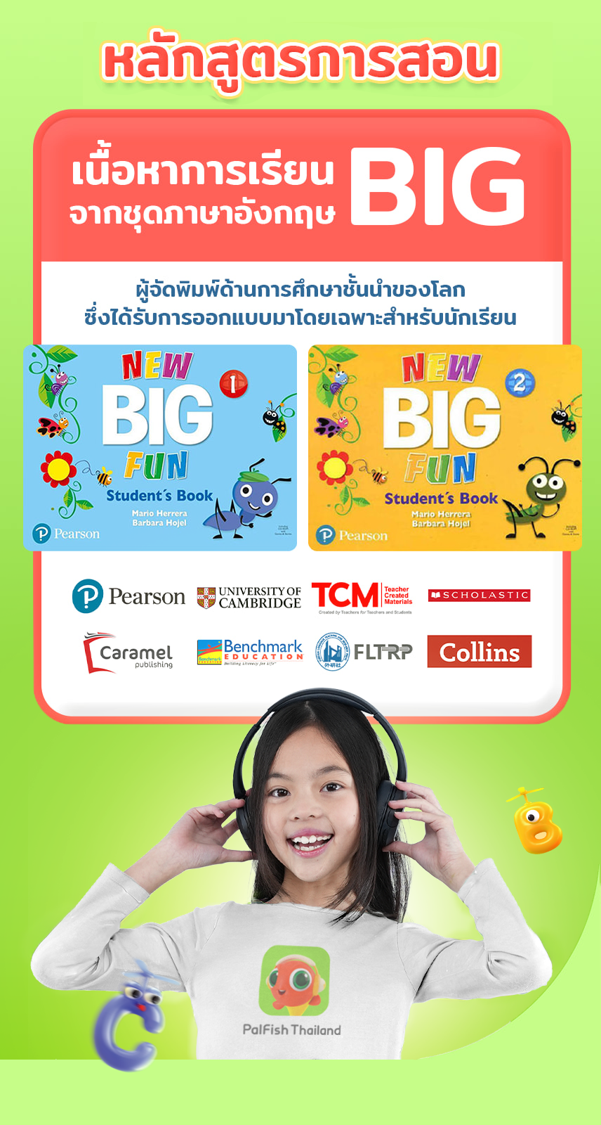 หลักสูตรการเรียนการสอนจาก Pearsonสำนักพิมพ์ชั้นนำระดับโลก รุ่นBIG ออกแบบมาสำหรับเด็กที่ไม่ได้ใช้ภาษาอังกฤษเป็นภาษาแม่ และบุคคลที่ต้องการเรียนภาษาที่สอง เนื้อหาเกี่ยวกับวิทยาศาสตร์อบรมภาษาอังกฤษ และความสอดคล้องเกี่ยวกับเด็ก